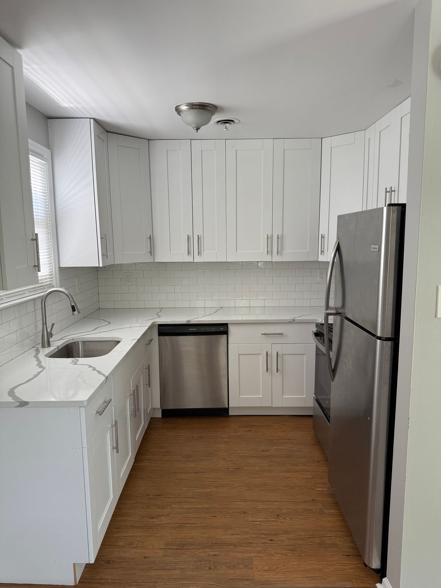 Newly Renovated unit. Brand new kitchen cabinets and flooring.